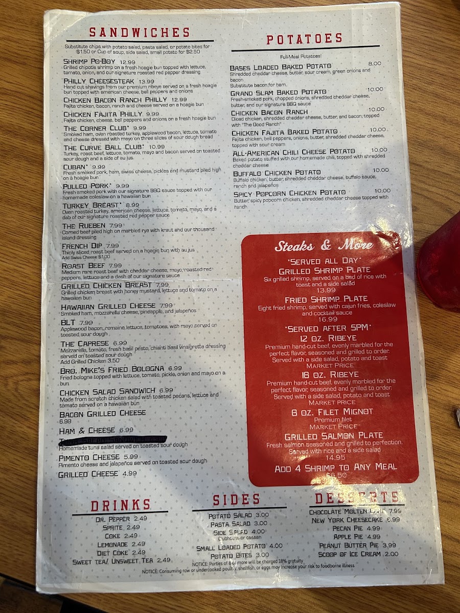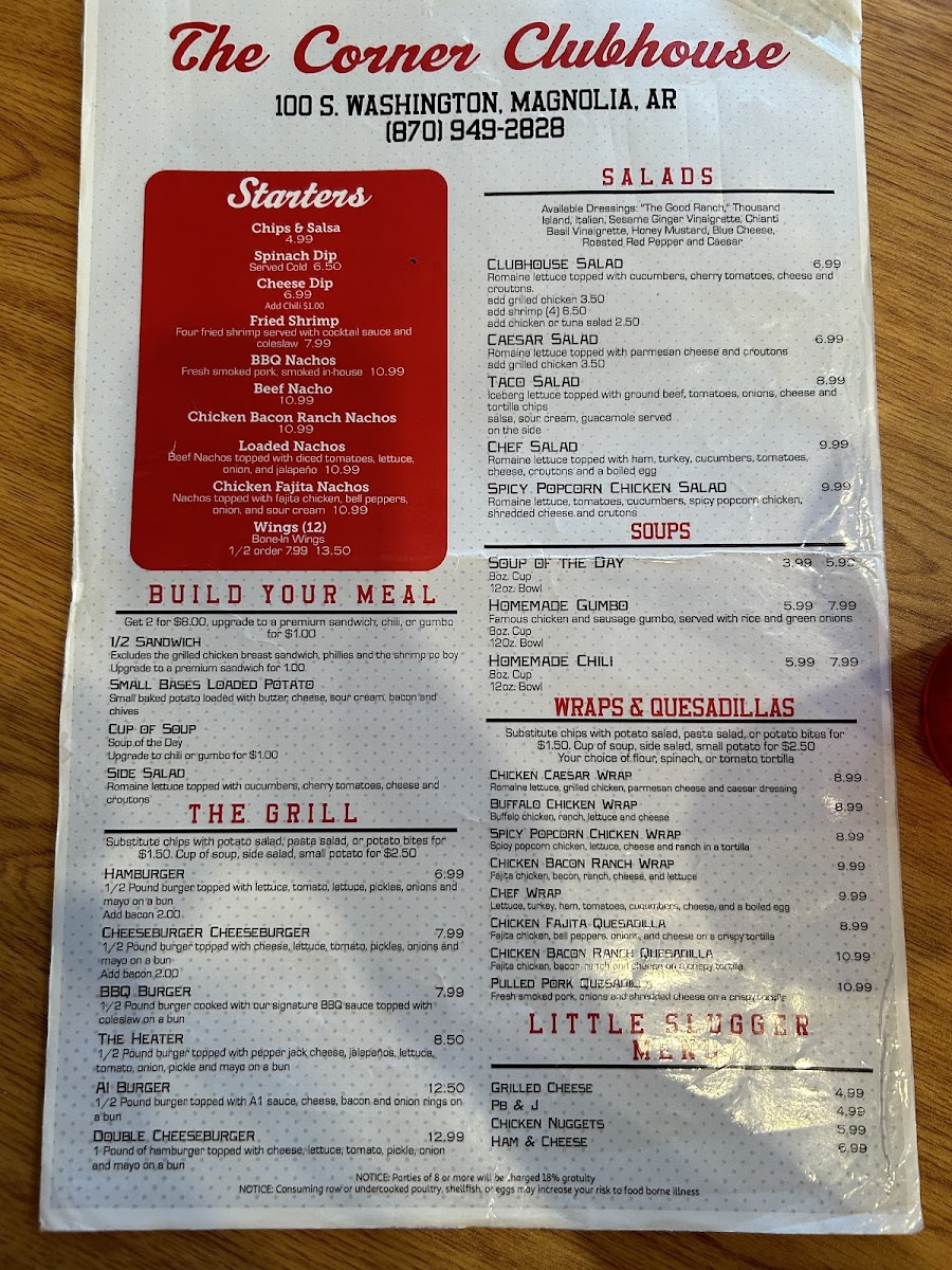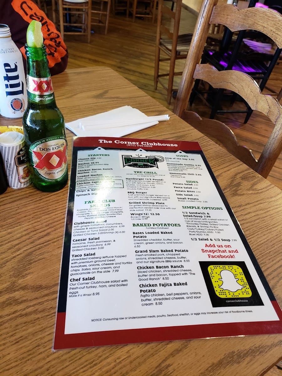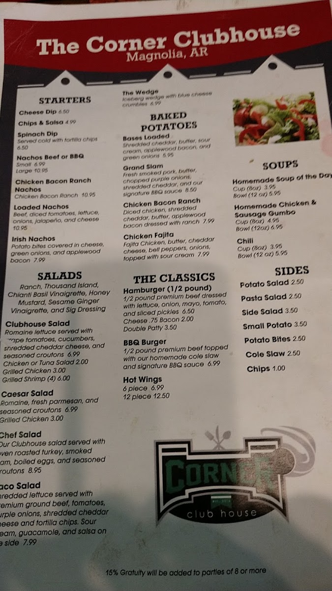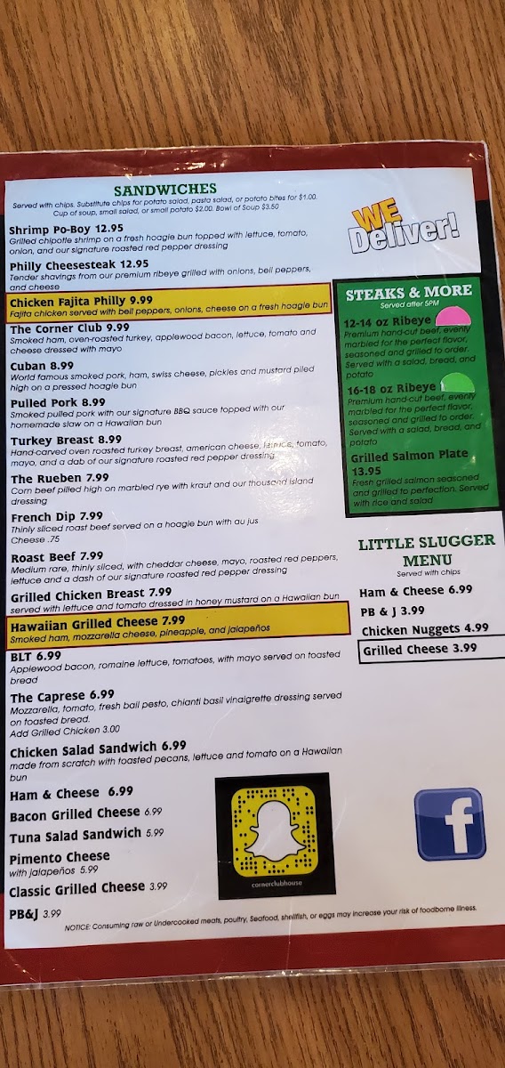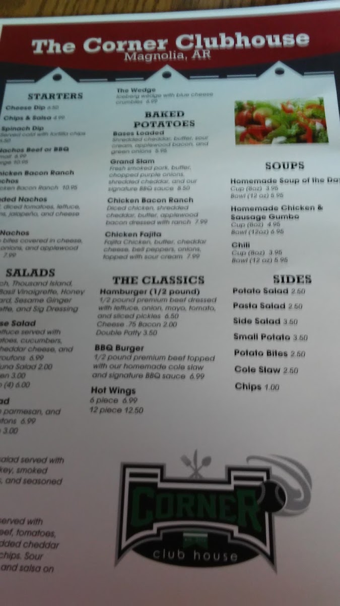The Corner Clubhouse Menu
